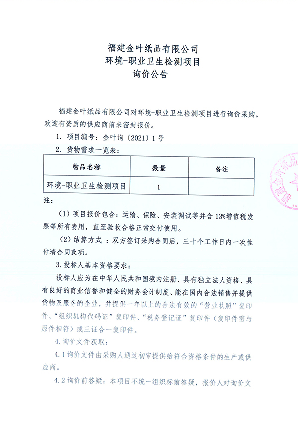 環境-職業衛生檢測項目詢價公告