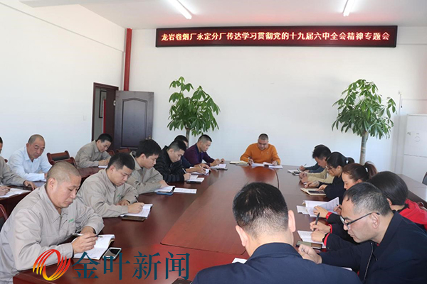 2021年11月26日下午,龍巖卷煙廠永定分廠組織黨員職工在科研樓四樓會(huì)議室傳達(dá)學(xué)習(xí)貫徹黨的十九屆六中全會(huì)精神。