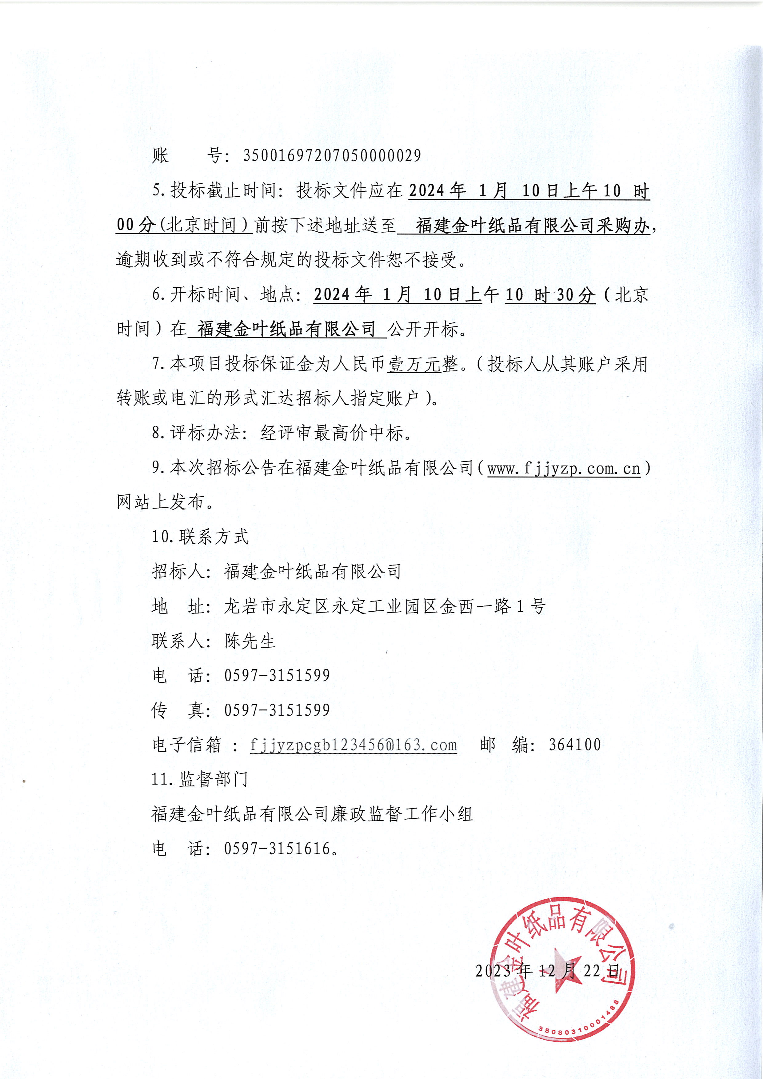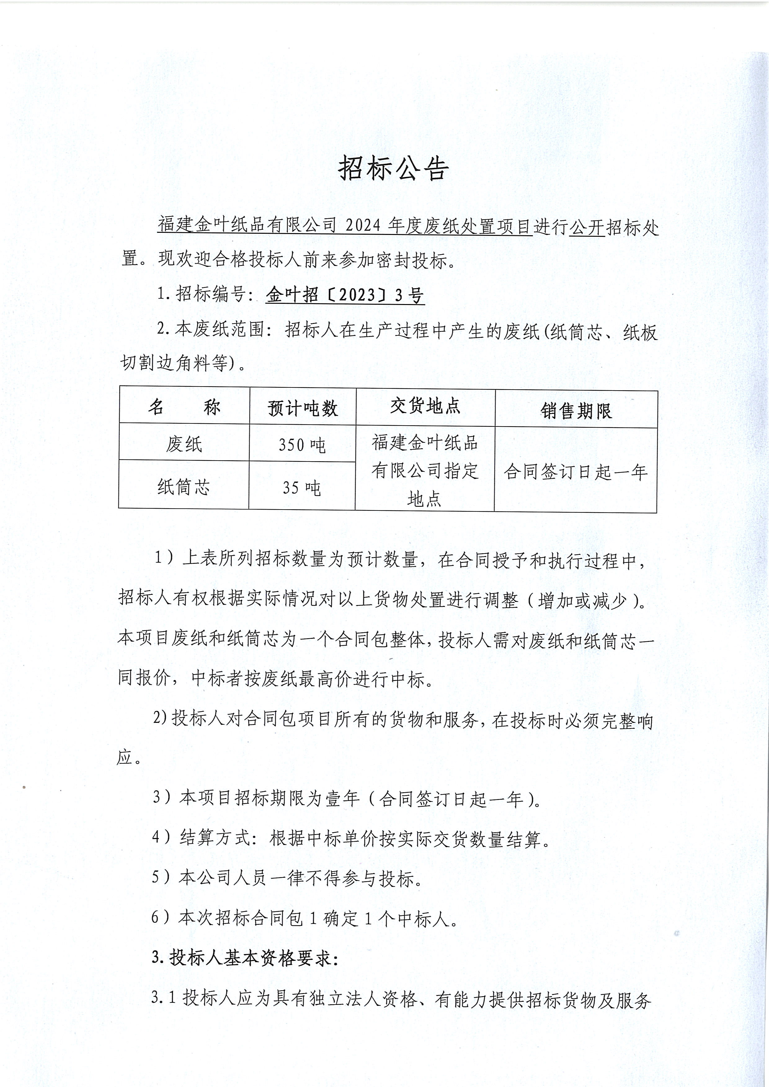 福建金葉紙品有限公司2024年廢紙?zhí)幹庙?xiàng)目